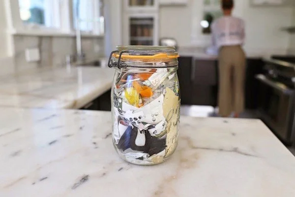 Looking for inspiration and ideas on the topic lead me to Bea Johnson, a.k.a. the “High Priestess of Zero Waste.” In the past few years, Bea and her family have gradually reduced the amount of waste they produce from two “enormous” carts of trash going out each week to filling one Mason jar a year. The catalyst came when the Johnsons moved from a large suburban home to a smaller rented apartment in the city. The downsize required them to let go of 80% of their belongings in what Bea describes as “voluntary simplicity” — a move that ultimately launched her as a leader in the “Zero Waste” community and a best-selling author on the subject.